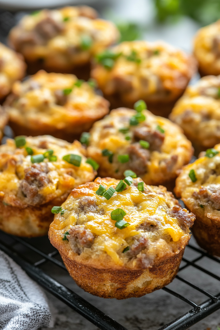 Preheat the oven to 350°F (177°C).Spray a mini muffin tin with cooking spray.Brown the sausage in a pan over medium heat.Set the sausage aside, and use the remaining grease (only a small amount should be left) to sauté the onions.Evenly distribute the hash browns into the muffin tins.In a small bowl, whisk together the eggs and milk.Stir in the cooked sausage, sautéed onion, shredded cheddar, salt, and pepper.Spoon the mixture over the hash browns in the muffin tins.Bake for 20 minutes.Garnish with additional cheese, sausage, and chopped parsley if desired.Freeze any leftovers for an easy breakfast on another day. Gail's Notes: I am looking forward to making this very soon!!!