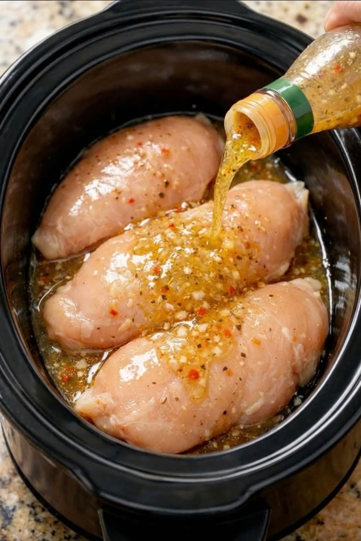 This Slow Cooker Italian Chicken is the definition of easy comfort food! With just a few simple ingredients and almost no prep, you’ll have tender, juicy chicken packed with zesty Italian flavor. It’s perfect for busy weeknights — just pour, set, and let the slow cooker do all the work. Serve it over rice, pasta, or with roasted veggies for a no-fuss dinner everyone will love!